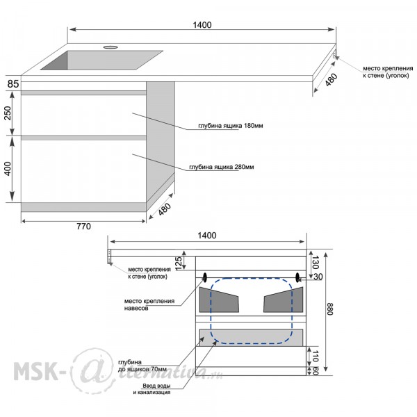 | Ширина раковины | 1400 мм |